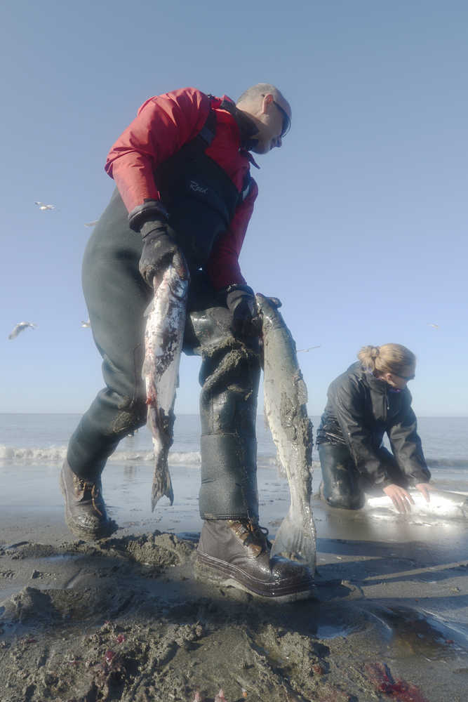 It’s not only the preparation of fish that differs from group to group, but the fishing strategies as well. Dipnetters traded opinions throughout the weekend about whether the fish were more plentiful at the river’s mouth or farther north where the waves came straight on. They debated their movements during the incoming tide compared to the outgoing. Speculations flew regarding the differences between the north beach and the south. Only one conclusion was reached unanimously; each year seems slower than the last.