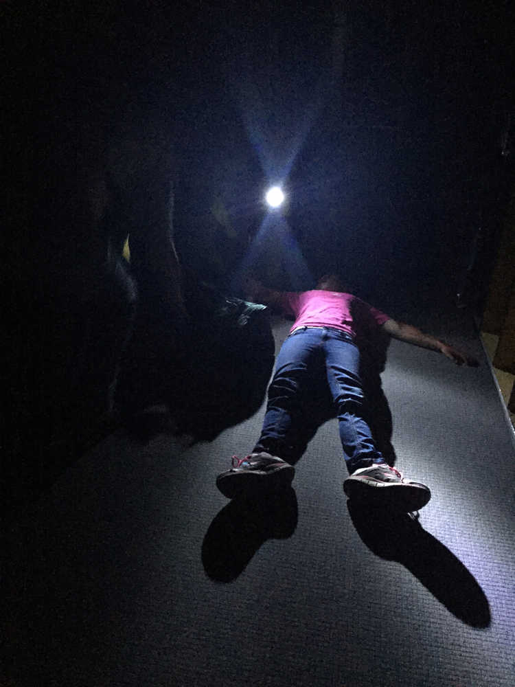 During the exercise, CERT classmates split into different search groups and kept in touch via radios as they moved through the darkened halls of Soldotna Prep School — that is, until they hit the dead zone planned by KPB Office of Emergency Management Program Coordinator Dan Nelson. Other complications included victims who periodically wandered back into the building and an “aftershock” from the simulated earthquake that rocked a dumpster as participants tried to recover a victim from underneath it.
