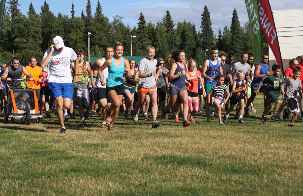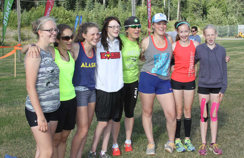 The final running of the 2015 Salmon Run Series was held Wednesday, August 5th on a perfect sunny day at the Tsalteshi Trails. The 20th race since Alli Ostrander came up with the idea as a freshman for her Caring for the Kenai assignment. To honor her creativity and accomplishments as a runner; two time Olympian Holly Brooks and twice winner of the Mt. Marathon flew down to run and pass out medals to the kids who signed up to run in the 1K youth race. “Being in the Olympics is awesome, it’s an achievement that everyone dreams of growing up, but I have to say what I experienced here today is totally a lot of fun as well. The Salmon Series is a huge accomplishment for Alli and this community. To have the foresight and put the effort into learning the organizational skills and leadership this type of an event requires is amazing coming out of a 14 year old four years ago. She’s an inspiration to all of us and has the heart of an Olympian,” said Brooks, who uses running to cross train for skiing. “You don’t need any equipment to do and everyone can use it as a means of staying fit and healthy,” said Brooks who is looking forward to more skiing in the future, “I’m looking at long distance skiing around the world in events like 50K, 70K in 12 different countries. There’s the Tour of China coming up which is a stage race in China so I’ll be taking my skies to Asia in the future but look forward to having more time like this in Alaska where I can inspire the next generation,” said Brooks.