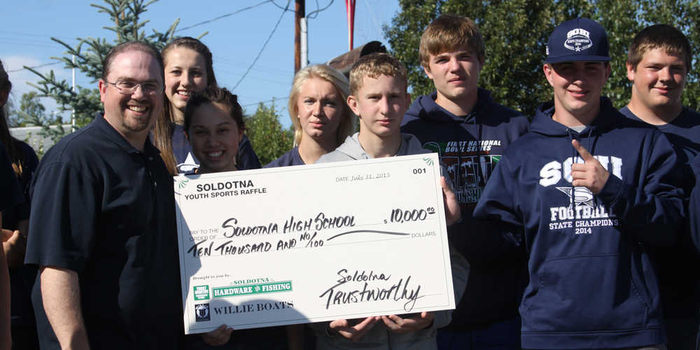The collaboration of Soldotna Hardware & Fishing and Willie Boats have raised $75,000 over the last four years for youth activities, “We only sell 850 tickets and they have always sold out because Jim makes a great boat so the tickets sell themselves. He gives us a great price for the boat and gives us the opportunity to support a great cause, our youth,” said Scott Miller. This groups receiving checks from the raffle proceeds included, Soldotna High School receiving $10,000, “That’s spread across the board for football, basketball, soccer, swimming, track and hockey. Soldotna Little League got $6,000 and other groups like Soldotna Youth Orchestra, Cook Inlet Academy and other groups, the money gets spread around really well. Our employees look forward to this every year because they know it’s a good cause and have a little in house competition to see who sells the most tickets,” said Miller.