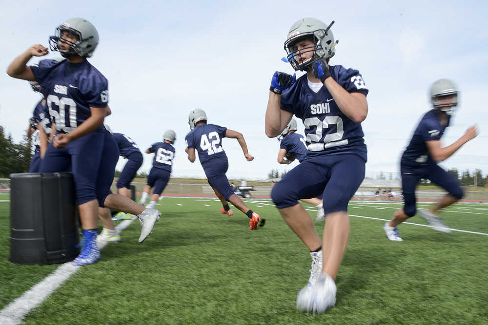 SoHi has won seven state championships in the last nine years, including each of the last three, and has cobbled together a 29-game winning streak that dates back to 2012 — the second such streak for Soldotna and only the third in state football history. A 30th consecutive win against South tonight would break the all-time state record.