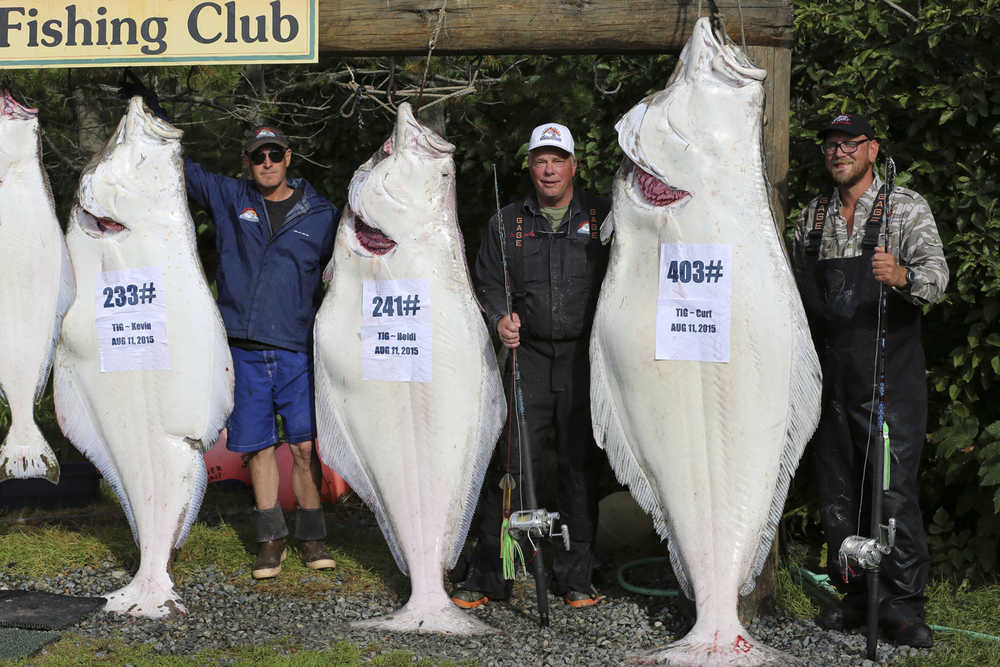 Saltwater anglers fishing with the Deep Creek Fishing Club stumbled on a rarity in the Cook Inlet on Aug. 11; they brought up a 403-pound halibut and two halibut lager than 200 pounds.