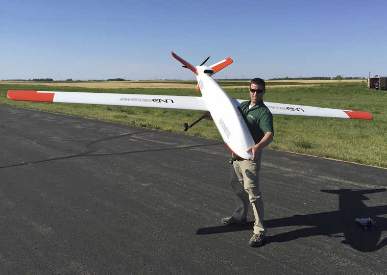 North Dakota State University professor John Nowatzki is spearheading a research project that would use a large drone to monitor crop conditions and plans to ask for a special permit to put an unmanned aircraft with a 35-foot wing span in the Red River Valley at heights of 3,000, 5,000 and 8,000 feet. The pictures from higher altitudes will be compared to those from a smaller drone at 400 feet and satellite images to see what’s best at identifying crop conditions such as nutrient deficiencies, disease symptoms and specific weeds.