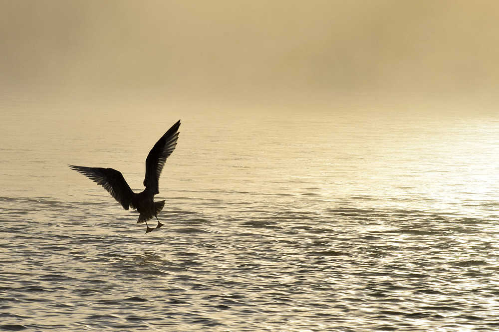 Photo by Rashah McChesney/Peninsula Clarion A seagull lands on the Kenai River near the Pillars Boat Launch on Monday August 24, 2015 near Kenai, Alaska.