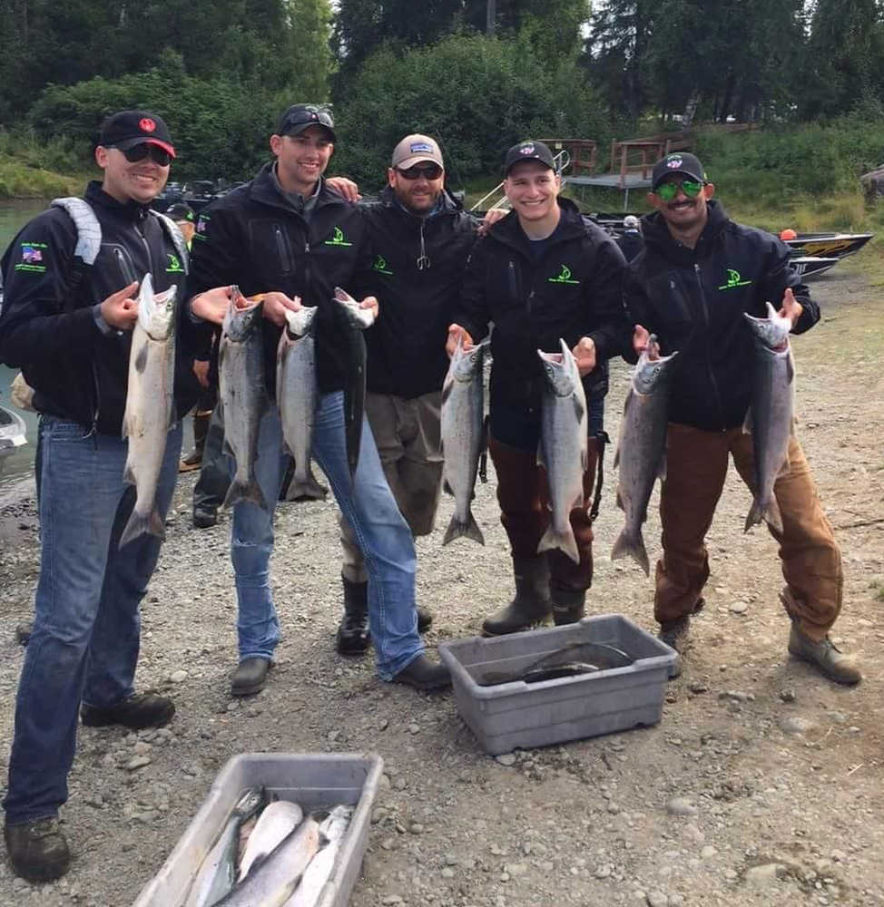 Participants in the Kenai River Foundation's Wounded Heroes Event show off their catches. (Submitted photo)