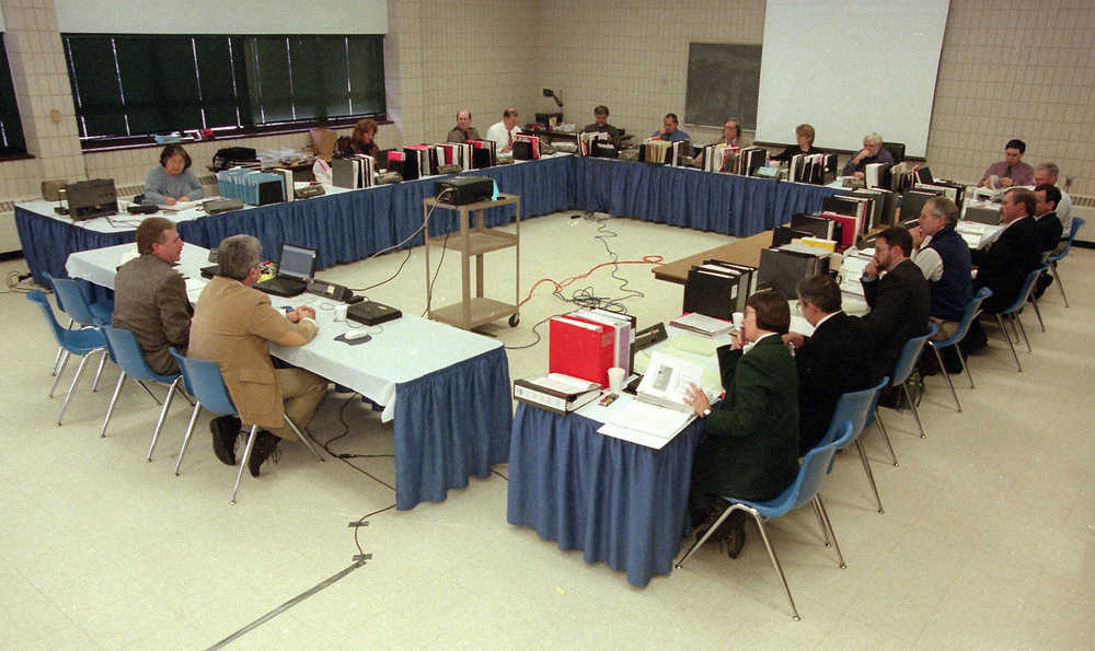 (Clarion file photo)Members and staff of the Alaska Board of Fisheries meet in Soldotna Feb. 16, 1999. The 1999 meeting was the last time the full board met on the central Kenai Peninsula to address upper Cook Inlet fisheries.