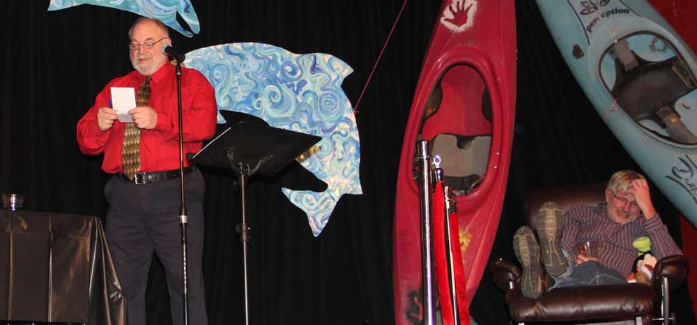 While throughout his career as founder and executive director of the Kenai Watershed Forum (KWF) Robert Ruffner received many esteemed national awards for his accomplishments. The awards he received last week at his retirement roast seemed to bring Ruffner equal pleasure. Over 50 friends and supporters bought tickets to the roast which allegedly was kept a secret from the former Board of Fish nominee, “Well, actually I became a bit suspicious that something was goofy when Peter showed up on time to pick me up, because he’s never on time,” Ruffner confessed. Sen. Micciche was charged with getting Ruffner to the Triumvirate Theatre in Kenai. Ruffner was given an easy seat of honor stage left beneath two Kayaks which he undoubtedly will be spending more time in 2016, while a panel of friends and officials recalled satirically his life at KWF.