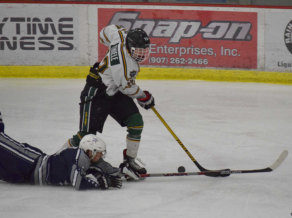 1st period — 1. Colony, Thiele (Smith), 3:09. Penalties — Soldotna 2 for 4:00; Colony 2 for 4:00.