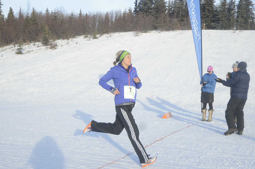 Mika Morton of Soldotna took first place overall in the women’s event with a time of 15:18. Morton participated in the race once before, in high school, but gets plenty of practice as she coaches the Kenai Middle School Ski Team, she said.
