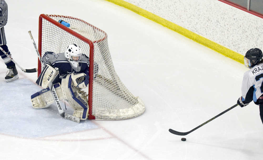 Soldotna was charged with a penalty just 36 seconds from the end of the opening period, but it didn’t bite the Stars until the second stanza. Just 43 seconds into the middle period, Zach Plucinski caught the puck in the left faceoff circle and dodged a defender to score the power-play goal and put Chugiak up 6-0. It ultimately became the only goal of the period.