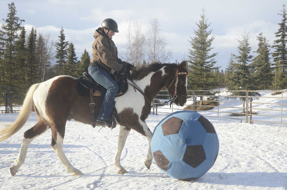 Green has her horses and riders participate in as many games and exercises as possible on her ranch, from the horses pulling kids on sleds and tubes to horse-sized soccer. Green said she would love to get enough interest in games to have multiple horses and owners involved, and that an indoor arena could help that.