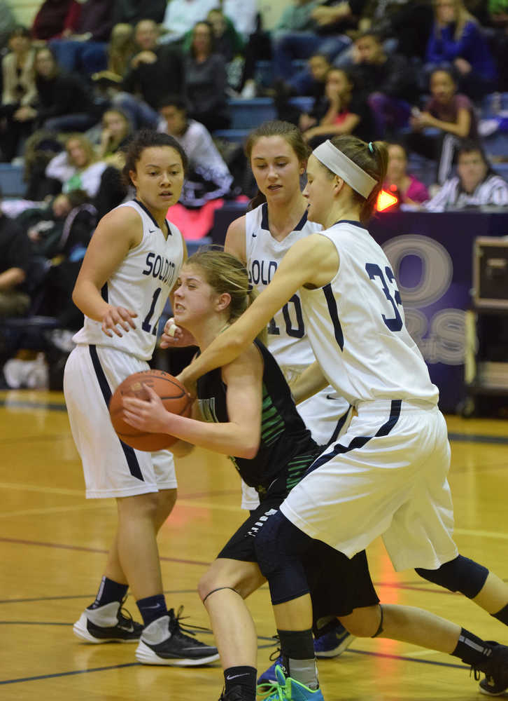 SOLDOTNA (63) — Kuntz 1 0-0 3, Sheridan 2 3-4 9, Casey 0 0-0 0, Spence 2 2-4 6, Dickson 2 0-0 5, Smithwick 9 3-4 24, Evans 5 6-8 16. Totals 21 14-20 63.