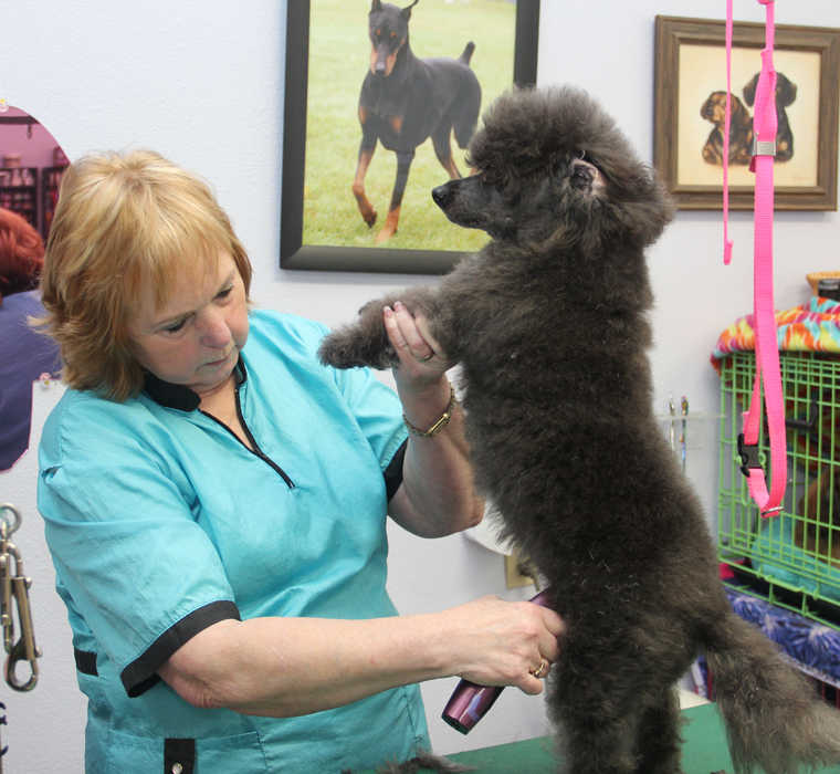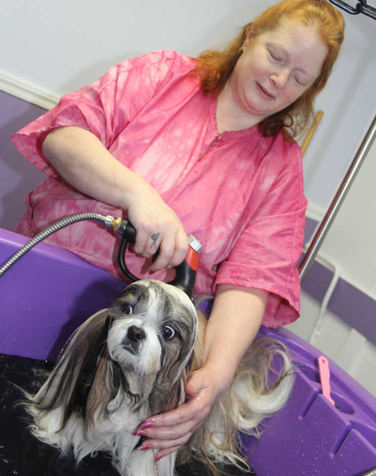 The VIP’s (Very Important Pets) of the Kenai Peninsula are wagging their tails and purring about the new Tarma’s Grooming salon across from Spenard Builders Supply on Funny River Rd. in Soldotna. Leslie Bacthelder, owner of Tarma Grooming has been grooming dogs for 36 years and is happy to be at the new spacious location (formerly Tail Waggers) after being at the Red Diamond Center since 1983. “I started grooming when I was 15 years old taking my grandmother’s poodles to a shop in Anchorage where they taught me how to groom and I ended up working in Anchorage for several years before moving down here to Soldotna and opening my own shop, virtually everything I know and do I have learned through hands on experience,” Bacthelder, now a certified master groomer told the Dispatch. Leslie now has a Tarma Team of groomers who she has all personally trained, “All of the groomers working at Tarma have been trained by me. All have learned how to handle dogs carefully, how to work with older dogs and puppies. All of the girls have dogs of their own and most show them or do performance events with them, it’s what makes them professionals and know precisely what the breed is supposed to look like,” she said.