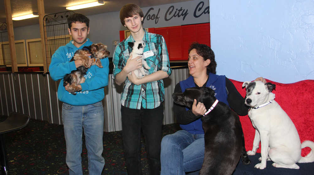 It was also no surprise that KCHS juniors had the high-tech industry on their minds and over at Northern Tech Group (NTG) in Soldotna, a business started by Tim Jordan that now has 7 full time employees, “We talked this morning with Emma and Jared about the skill set desired for a successful IT person and right at the top was customer service. IT skills are great but they are ongoing and ever changing. The communication portion of customer service has to be learned right up front to successful,” commented Jordan. Emma, a foreign exchange student from Finland said that while she had always been interested in IT she never expected anything like the Job Shadow experience, “IT is what I want to pursue when I go home to Finland,” she said. “If all goes the way I plan I want to open an arcade here in the community,” said Jared Duck while at NTG. Over at the Blue Moose Bed & Biscuit in Soldotna, owner Ellen Adlam introduced Alec Levy and Josiah Luze to some things about animal care that they hadn’t anticipated, “We’re learning today that there is so much more to animal and pet care today than we ever thought possible and that translates into new career paths and business opportunities like we’ve started here,” said Adlam. “I’ve grown up with dogs and cats and love animals and if I can pursue a career that allows me to do what I love while earning a living then that’s what I want to pursue,” said Luze. “I’d like to do this not just as a summer job, but all my life,” commented Josiah’s Shadow partner Alec Levy. “Actually, I got one of my best employees from the Job Shadow program several years ago,” said Adlam.
