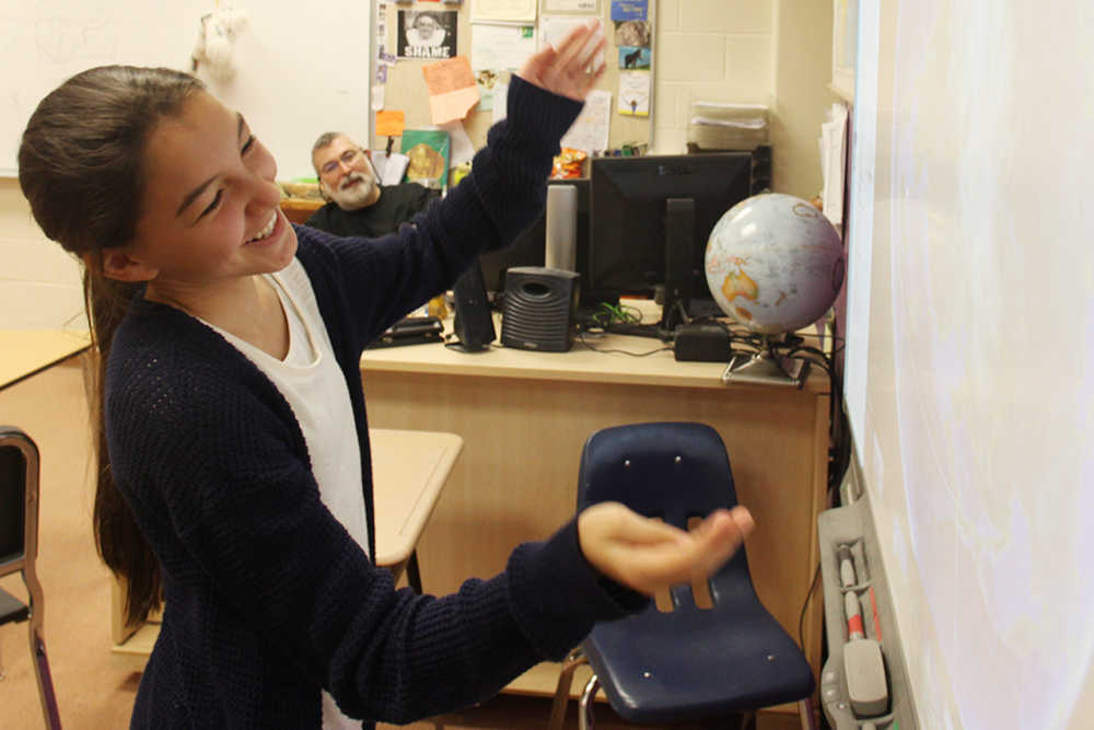 Seventh grader Gabriella Rogers is one of 100 students statewide heading to Anchorage on Friday, April 1, for the 2016 Alaska State Geography Bee, the winner of which will advance to the National Geographic bee Championship in Washington D.C., May 22-25. She has been preparing for months under the tutelage of social studies teacher Rob Moore.