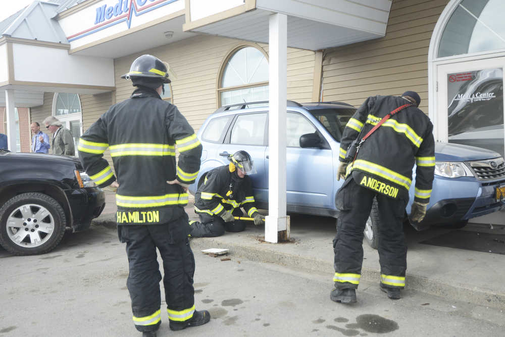A woman was backing out of the MediCenter parking lot in a blue Subaru station wagon when the accident happened, said Sgt. Ben Langham with Kenai Police. She was wearing a medical boot on her foot, and hit the gas when she attempted to hit the breaks, he said.