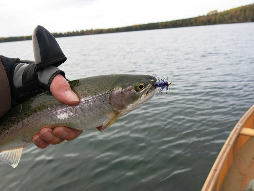 With this warm weather it’s always tempting to get out on the Kenai and try for some trout. What I especially like this time of year is the variety of flies rainbow trout are likely to take. The warm weather will often induce a hatch of stone or caddis flies, and fishing with nymphs, either drifting them along the bottom or suspended in the water column, and even on a rare occasion using a dry fly on the surface, can be productive. If there isn’t any insect life stirring, there’s always the go-to: flesh flies mimicking last year’s salmon. As the water rises it reconstitutes last year’s carcasses and flesh becomes a major food source long before the latest generation of salmon show up. I also like taking a break from “dead drifting” flesh and egg patterns by swinging a leech through some of the deeper holes with a sinking line.