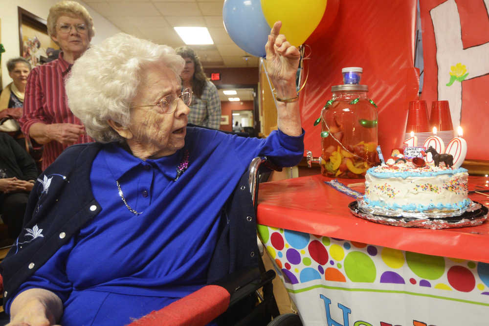 The celebration was actually set for Heritage Place resident Hazel George, who joined Alaska’s other centenarians as she turned 100 years old. Born in Idaho on April 24, 1916, and raised on a chicken farm, George taught the first grade for 20 years, said her daughter, Roberta Tuning of Soldotna. George also liked to join her husband in riding horses, she said.