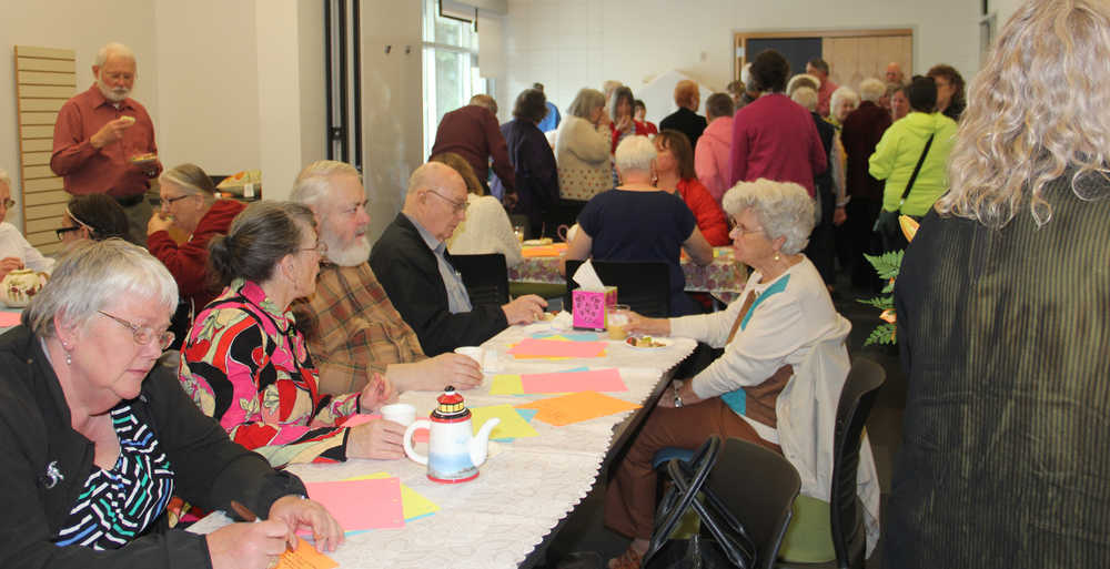 The party was organized by Dee Cassel, president of the Friends of the Library whose volunteers put together a beautiful buffet. As the Evenson’s longtime friends turned out to say farewell they were encouraged to write messages for Jim and Nedra like in a high school year book. Kenai Mayor Pat Porter presented Nedra with flowers for the occasion, “I suppose roses would have spoken to our love for you,” said the Mayor, “But when I saw this bright spring bouquet it made me think of all the brightness and light you have brought to this community and I couldn’t resist,” she said. Then in her official capacity Mayor Porter read a proclamation officially making April 26th, 2016 Nedra Evenson Day which read in part, “Whereas the City of Kenai recognizes Nedra Evenson for her devotion to the Kenai Community Library and as a pillar of our community. Now, Therefore, I Mayor Pat Porter do hereby recognize April 26, 2016 as Nedra Evenson Day in the City of Kenai and I call this observance to the attention of our citizens.” Jim and Nedra will be living at the Horizon House in Anchorage, “It’s easy to find and we invite anyone to stop by and visit the Cookie Lady when they are in town,” said Nedra. From her pastor Janice Carlton, Nedra received a framed copy of their closing hymn “Go Ye Now in Peace.”