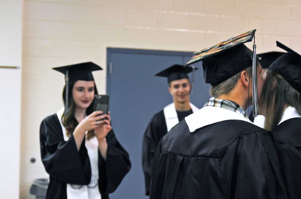 Under a bedazzled cap, Mikaila Colton watched the hallway fill with her graduating classmates. As the senior class vice president, she knows most of their names and where they’re headed. Colton herself is headed for Seward to study culinary arts at Alaska Vocational Technical Center. Ultimately, she said she wants to work on a cruise liner.