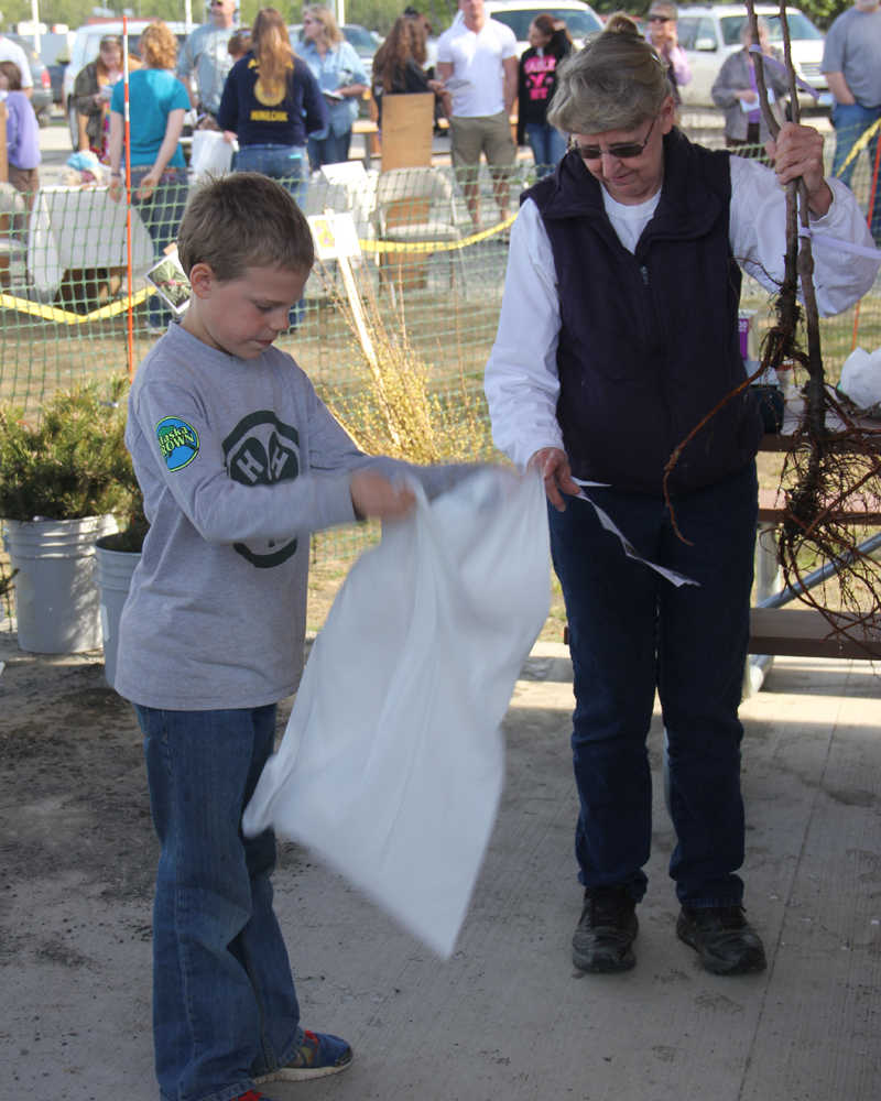 According to Cassy Rankin, 4-H club leader of the North Rd. Rangers who helped organize the annual 4-H Tree Sale at Soldotna Creek Park this year, “Every last tree sold out in just over an hour, which is unheard of! What a wonderful day for the tree sale.” The event was extremely well organized with a long line forming early on a perfect spring day to purchase trees and support 4-H on the Peninsula. Groups of four at a time were allowed to enter the shopping area and as folks waited their turn Janice Chumley of the UAF cooperative extension answered consumer questions about their trees and spring planting.