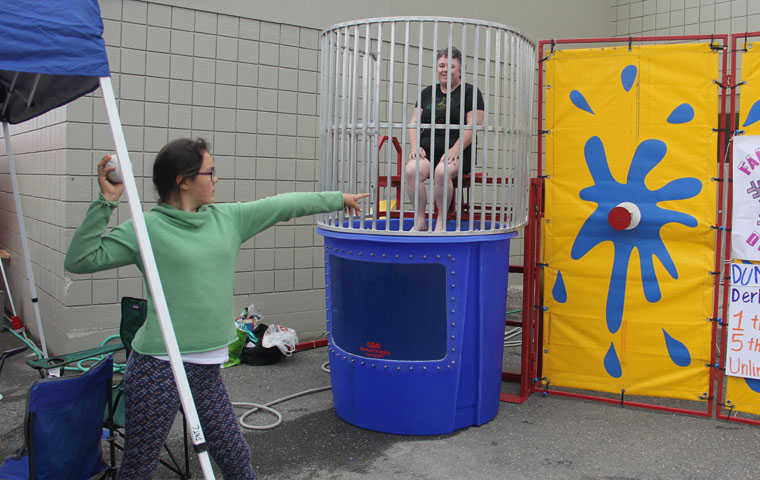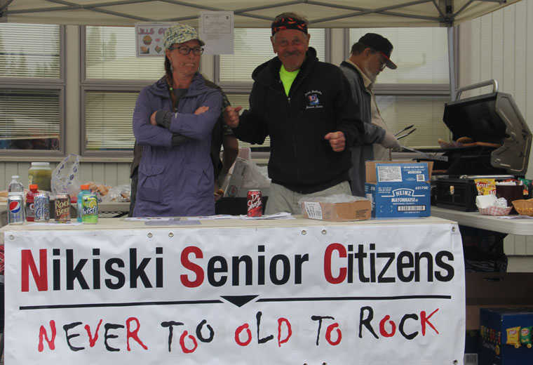 Two of the warmest, sunniest weeks that anyone can remember on the Kenai have been followed by two rainy weekends in a row drenching typically busy events scheduled to accommodate family fun on Alaska’s Playground and draw pre-salmon run visitors. Out in Nikiski it was the annual “Family Fun in the Midnight Sun” event that had a lot of fun but no sun. “Maybe we should trade Saturday and Sunday this year for Tuesday/Wednesday,” laughed Rachel Para, director of the North Peninsula Recreational Service Area that hosts the annual family fun event. But the weather did not deter Nikiski families from turning out for their special weekend and having fun while sharing the liquid sun and games of chance with many prizes to be won. There was more of everything in Nikiski this year, more games, more booths, more vendors and more prizes, “Every year we’ve expanded a little more and have had more interest from vendors to come out here because the event continues to grow and become more popular over the years. The Nikiski Fire Dept. brought out their trucks again this year and played water games with the kids and had a chili cook off, so the Far North Derby girls were not the only ones getting wet in the dunk tank. But it was a hoot and everyone had fun even without the sun,” added Para.