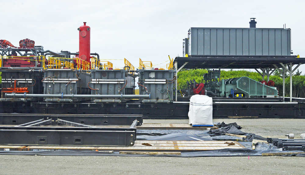 Johnson said BlueCrest doesn’t presently have any fracking equipment on site — the work will be done later by North Slope-based contractors after the wells are drilled. The drill rig sitting behind the separation complex presently consists of a 30-foot tall platform. When completed with a 180-foot derrick being shipped from Texas, it will be the largest on-shore drill rig in Alaska, Martinek said.