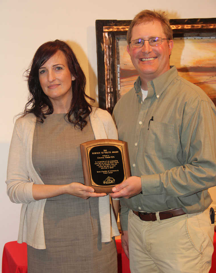 The Service to Youth Award this year went to Country Foods/IGA, the Steinbeck family, “The list of beneficiaries of the Steinbeck and Country Foods IGA generosity over the years would be too long to list- but it is hard to find a youth event without a Country Foods IGA banner hanging, or a youth organization in the community that hasn’t been supported by IGA,” said Jackman in presenting the award. Kenai Mayor Pat Porter was selected as the Volunteer of the Year for all her service and random acts of kindness that she has done since in the community since 1969. The Community Service Award went to the Peninsula Food Bank for working their mission that “No one deserves to go hungry.” The Outstanding Small Business of the Year Award went to Doug and Dawn Brown who started Brown Insurance Agency in 1983. And the Business of the Year Award went to Wal-Mart, “They filled the need to not have to travel great distances to purchase the smallest of items…sheets, towels, kitchen items, gardening products, craft supplies, books, socks, shoes and yes, even men’s underwear. These items, and so many more all come with a price. But, what they have given back to this entire community has been priceless,” said Jackman in presenting the award.