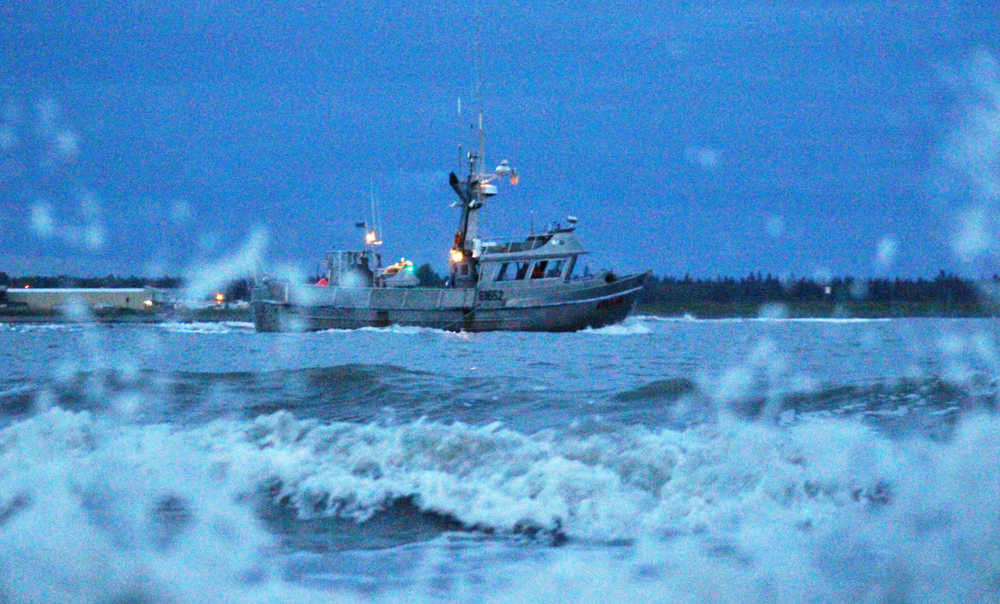 A commercial fishing boat leaves the mouth of the Kenai river for a day of fishing in Cook Inlet on Monday, July 4 in Kenai.