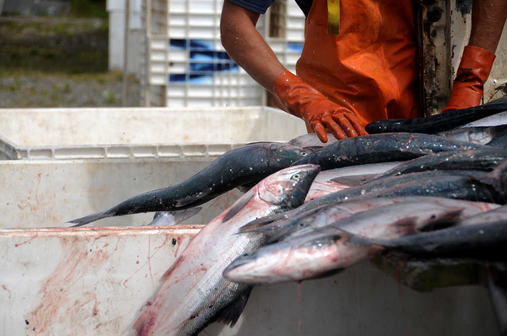 Photo by Elizabeth Earl/Peninsula Clarion Workers at Alaska Salmon Purchasers in Nikiski, Alaska sort fish from a setnet site Monday, July 11, 2016. The Kenai and East Forelands setnets opened for their first regular period Monday.