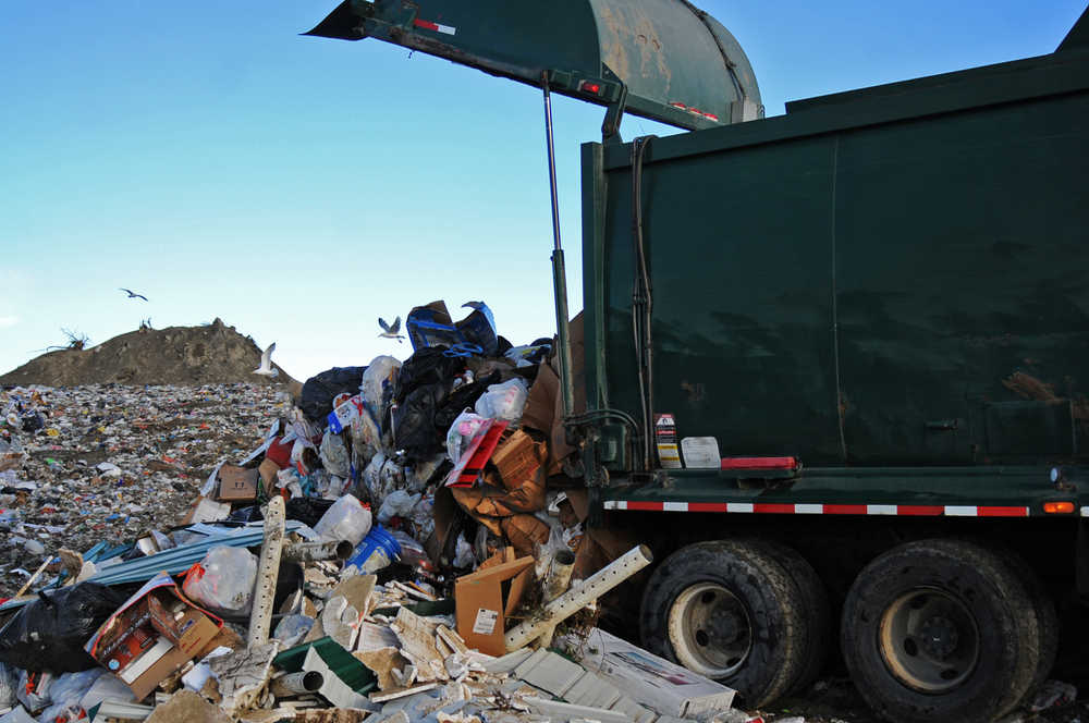 At the landfill, he wheeled the truck around and backed it next to a mound of trash, where another driver was dropping off his own load. Bunch jumped out and unlatched the hook holding the back hatch in place, stepped back to the cab of the truck and triggered a lever that pushed the loaf of trash out to join the rest. About five tons of trash of all colors and states of decay came tumbling out: cardboard boxes, kitchen bags, solitary soda bottles and a five-gallon bucket. Without ceremony, Bunch secured the hatch again and prepared to head out to gather more.