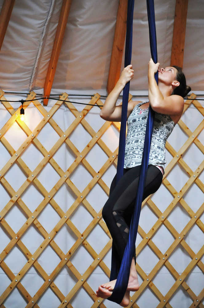 The spurts of laughter inside the Yoga Yurt on Kalifornsky Beach Road during a Monday evening aerial yoga class confirmed that participants were getting more out of it than just exercise.