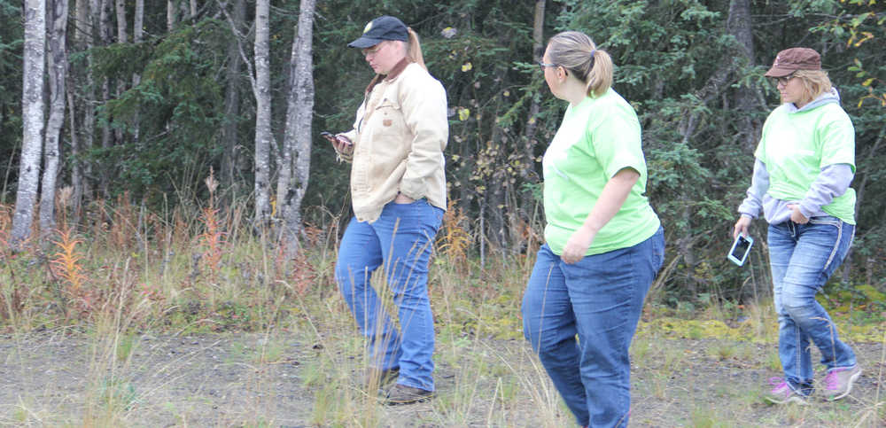 “Ahhh Man! I don’t believe this!” “Way devious where did she come up with this.” “Crazy, just crazy!” “Sadistic!” “Demented”, “Totally over the edge,” were just a few of the comments over heard in the field as team members traveled the Central Peninsula Saturday, smart phone or GPS in hand. The global positioning device only brought the geo-cachers within a ten foot radius of the cache location. Then it was up to the eye, hand or imagination to discover where or what the cache was in order to get the next coordinate for the 6th Annual Challenger Learning Center of Alaska (CLCA) Geo-Cache Rally. And even after the cache was discovered that didn’t mean the hunt was over. The obvious water jug at the Sterling Senior Center had been filled with 100 film canisters only one of which held the prize. “We’re the Challenger Learning Center, so it had to be challenging,” said Daughn Carpenter, otherwise known as the Geo-Genius Guru of the CLCA who makes up and stashes all the caches. “The teams come back year after so I must be doing something right and I confess to being devious,” she said.