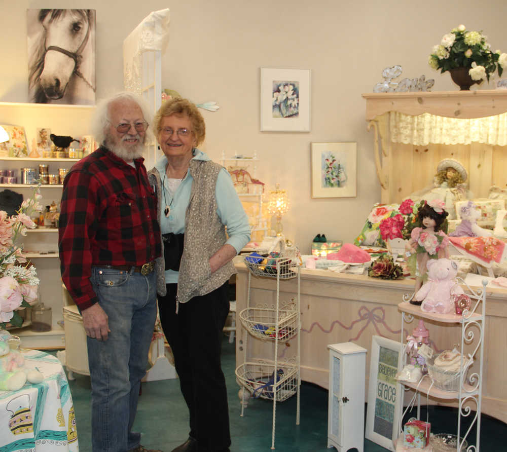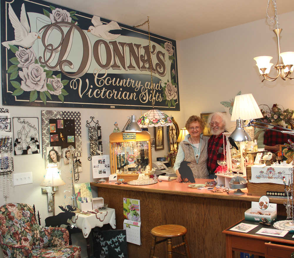 But Wait! What happened to Donna’s at the Blazy Mall? “I moved my store in Soldotna right next to Don Jose’s next to the Soldotna Creek Park strip. It’s smaller of course because my big store is out here, but we still have a lot of nice gifts as always and a new craft room where we have painting classes. I’m there most of the time now that the tourists are gone and Tom goes back and forth between stores. Plus he sells more than I do because folks really like him,” laughed Donna. Over the year’s Donna’s has built a reputation for really having more items than ones eye can take in at first glance and now with two locations that is totally an understatement. How does she do it? “It’s my life, it’s what I do every moment that I’m awake, is look for things and ideas to display them. That’s why I’m in business, it’s what I want to do. It’s not to make a lot of money, I just don’t want to lose any money and if I’m happy with what I’m doing and can make my customers happy, then that’s my goal,” she said. And how did the floor of clouds come about? “Tom called and asked what I wanted for a floor, thinking I was going to want something fancy and I said what is it now? And he said dirty old concrete but I can clean it up. So I asked one of my customers that came in and she said a lot of people are just staining it so that’s what he did and it is absolutely beautiful and makes the shop.” With the holidays coming up Donna will have special Christmas rooms at both shops. In Soldotna Donna’s is open 11:00am – 5:00pm Monday – Saturday and at Two Rusty Ravens 8:00am – 6:00pm. And if you happen to miss Donna in Soldotna, her longtime assistant Rachel will be there to help you find the perfect gift or sign up for painting classes.