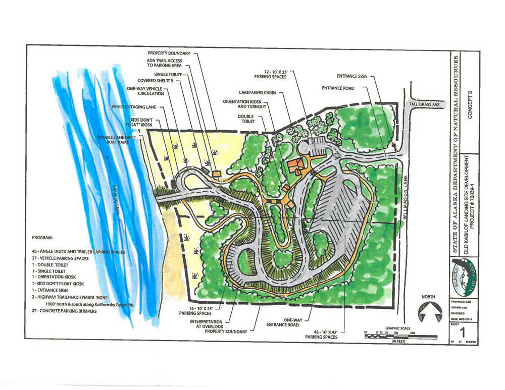 The public can comment on the proposed plans for the facility, which the state is calling the Old Kasilof Landing facility, until Jan. 27. The state is tentatively planning to go out to bid to start construction in fall 2017 or spring 2018. The Parks and Outdoor Recreation staff also planned to hold an open house in Anchorage on Thursday.