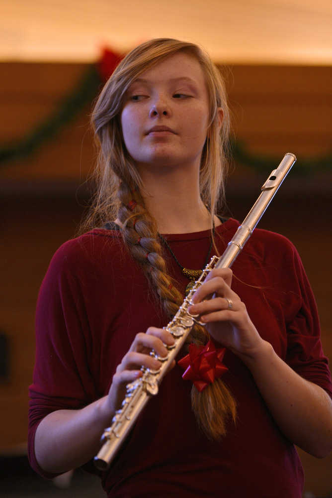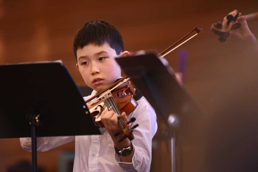 Sean Raften performs in a violin ensemble with his teacher, Ida Pearson, and other students in a flute and violin concert on Saturday, Dec. 17 at Christ Lutheran Church in Soldotna.