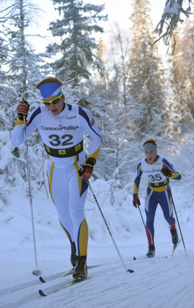 Sadie Fox, a sophomore at the University of Alaska Anchorage and a graduate of Soldotna High School, won the Under-16 and over women’s five-kilometer interval classic race in 15 minutes, 53.30 seconds. West Valley freshman Kendall Kramer, who won the cross-country running Tsalteshi Invitational last fall, was second at 16:16.10.