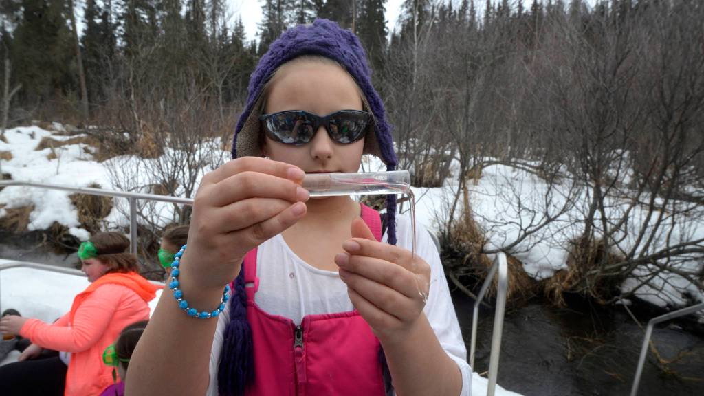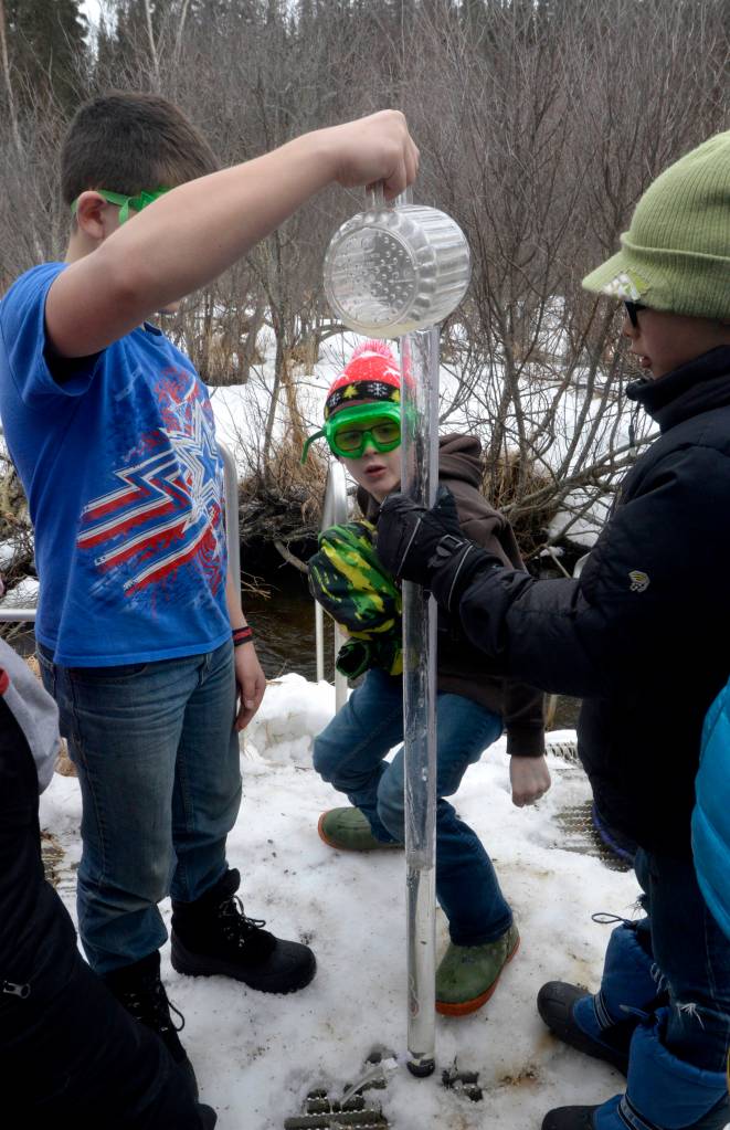Fifth-grade students at Kalifornsky Beach Elementary trekked along a trail, across the road, down a hill and over a small stream to Slikok Creek on a scientific fact-finding mission this Tuesday.