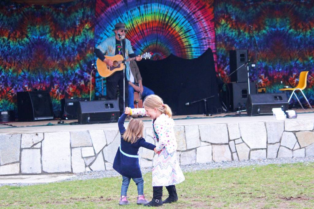 Graysen Besse, 5, gives Bensen Besse, 2, a twirl while dancing during this year’s Kenai River Festival on Saturday, June 10, 2017 at Soldotna Creek Park in Soldotna, Alaska. (Megan Pacer/Peninsula Clarion)
