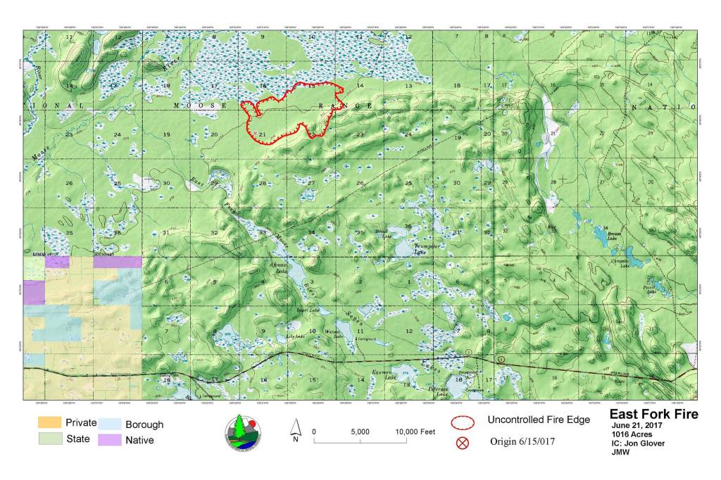 More than 100 people are still working on the fire, with a hotshot crew from Palmer also on the way, Prescott said. They will be good to have on hand for the planned “burnout operation” that will remove a stand of highly flammable black spruce from the area that could serve as future fuel. Another part of the management plan includes creating a fire break from the fire’s southwest perimeter about 2.5 miles south to the east-west Enstar Natural Gas Co. natural gas pipeline.