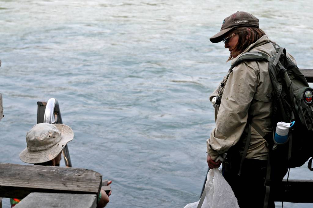 And she did just that. As a Kenai Peninsula Stream Watch volunteer with the Kenai Watershed Forum, Heindle talks to anglers and park visitors often, filling them in on ways to stay safe while fishing and how to protect the Kenai River’s vegetated banks for the health of the river and the fish that live in it.