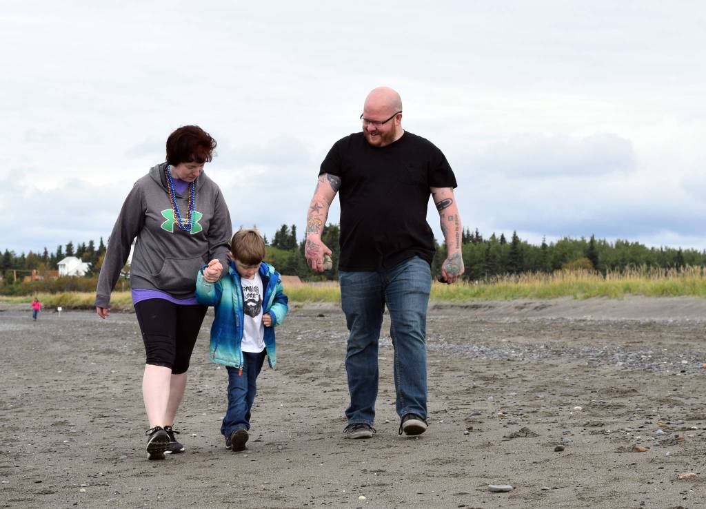 Erkeneff, whose son, Justin Bernecker, died of suicide when he was 16-years-old, spoke about her struggle with the unexpected loss to a group of community members, victims of suicide and supporters in front the the Kenaitze Indian Tribe’s fishery site in Kenai before the start of a two mile walk along the shore of the Cook Inlet.