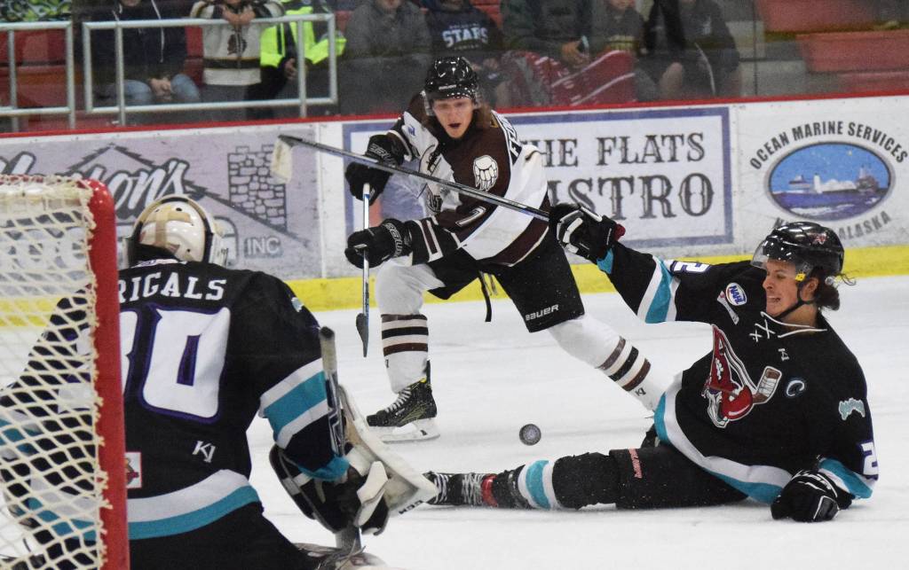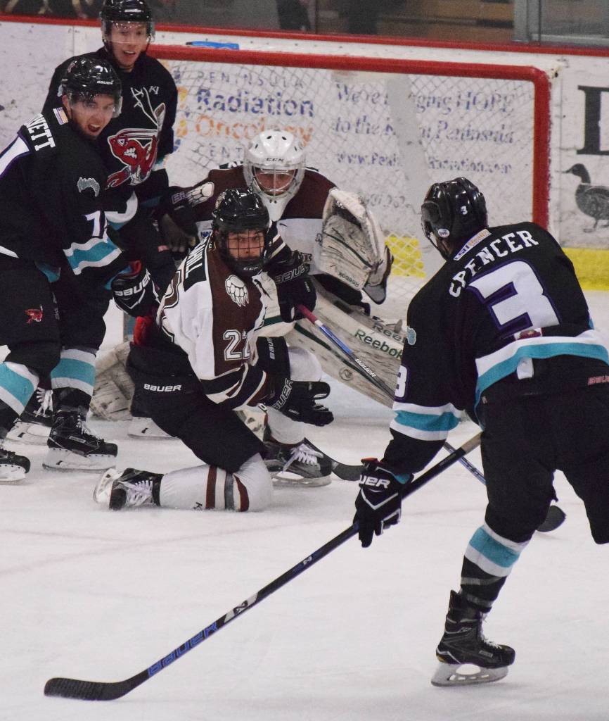 Kenai River head coach Josh Petrich said the first goal was unfortunate, as the puck flew through the air to Brendan VanSweden at the back door, where he batted it in with his stick. More misfortune came with 8 minutes, 8 seconds, left in the first period, when Kenai Central product Ross Hanson rung one off the crossbar.