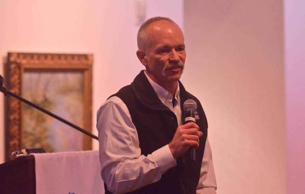 Homer Electric Association General Manager Brad Janorschke gives an update on the utility cooperative’s renewable energy projects on Wednesday, Oct. 18, 2017 at the Kenai Chamber of Commerce and Visitors Center in Kenai, Alaska. (Ben Boettger/Peninsula Clarion)