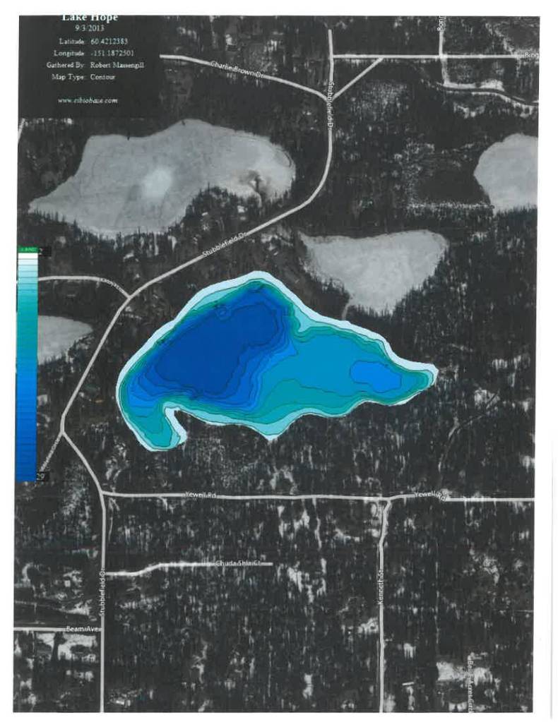 This bathymetric map from the Alaska Department of Fish and Game shows Hope Lake, one of the lakes in the Tote Road area known to contain pike. (Courtesy the Alaska Department of Fish and Game)