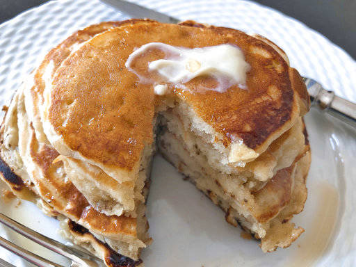 Remove from the skillet to the baking sheet and place the sheet in the oven while you cook all the batter. Scrape any stray crumbs or scraps out of the skillet as you make the pancakes or the fresh pancakes will pick up the burned bits as they cook. Serve as soon as possible, with salted butter and maple syrup.