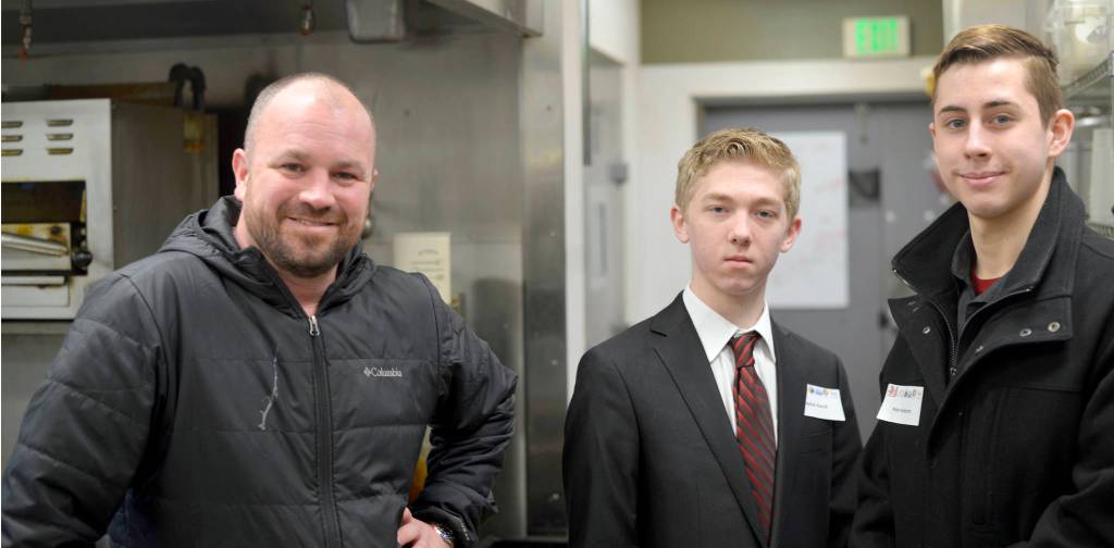 At The Flats Bitstro on Kalifornsky Beach Road, the owner of the restaurant, Luke Thibodeau, showed Kenai Central High School students Clayton Koroll and Peter Anderson the inner workings of his restaurant and the keys to owning and managing a small business.