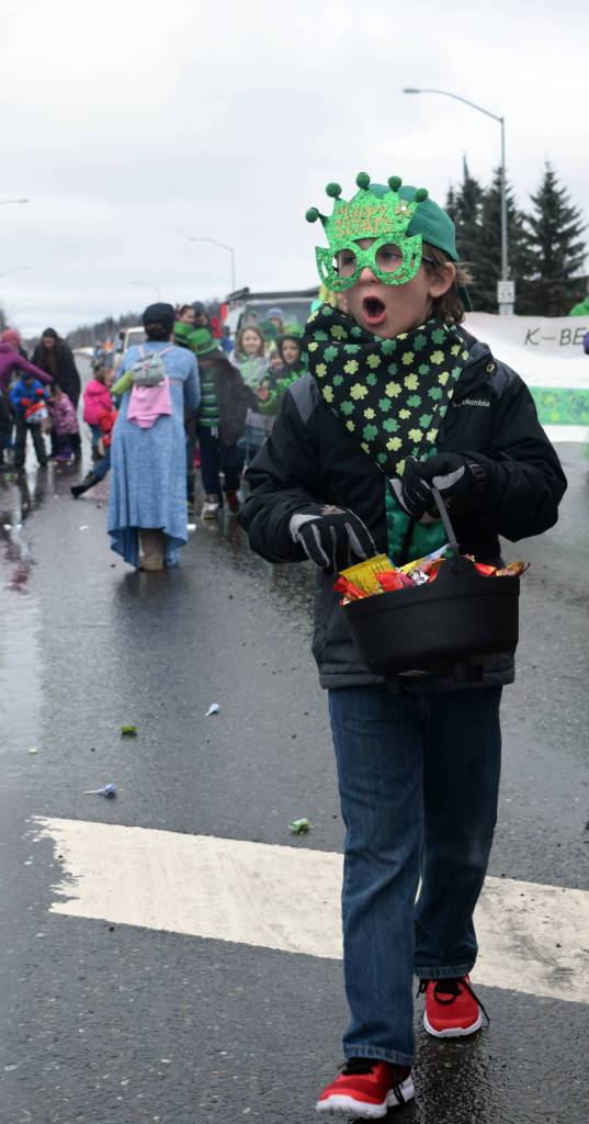 Despite gray skies and rainy weather, the Kenai Spur Highway was lined with green at the annual Soldotna St. Patrick’s Day parade Saturday. The parade, which began at 1 p.m., traveled along the highway spreading luck and candy to local families.