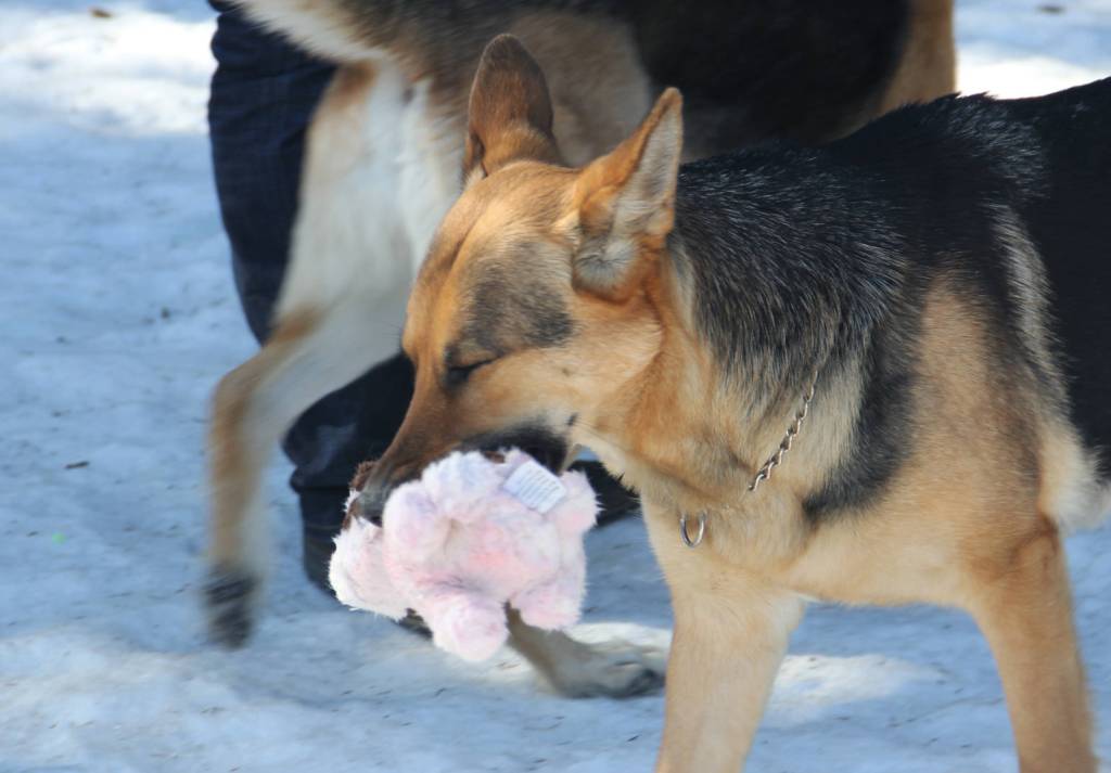 “Bridger enjoys attacking stuffed animals and tearing them up, so this is quite a fun day for him,” said Willow, anxious to send Bridger to hunt another stuffy. “For two years he trained as a search and rescue dog but he failed so he came to us. I haven’t taken any dog training classes but I just love him a lot and he listens to me.”