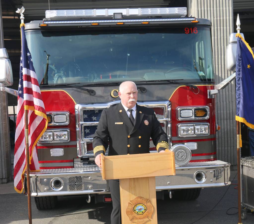 CES Chief Roy Browning introduced the new apparatus to the community May 5, during a dedication ceremony, pancake breakfast, and open house at the CES station in Soldotna.